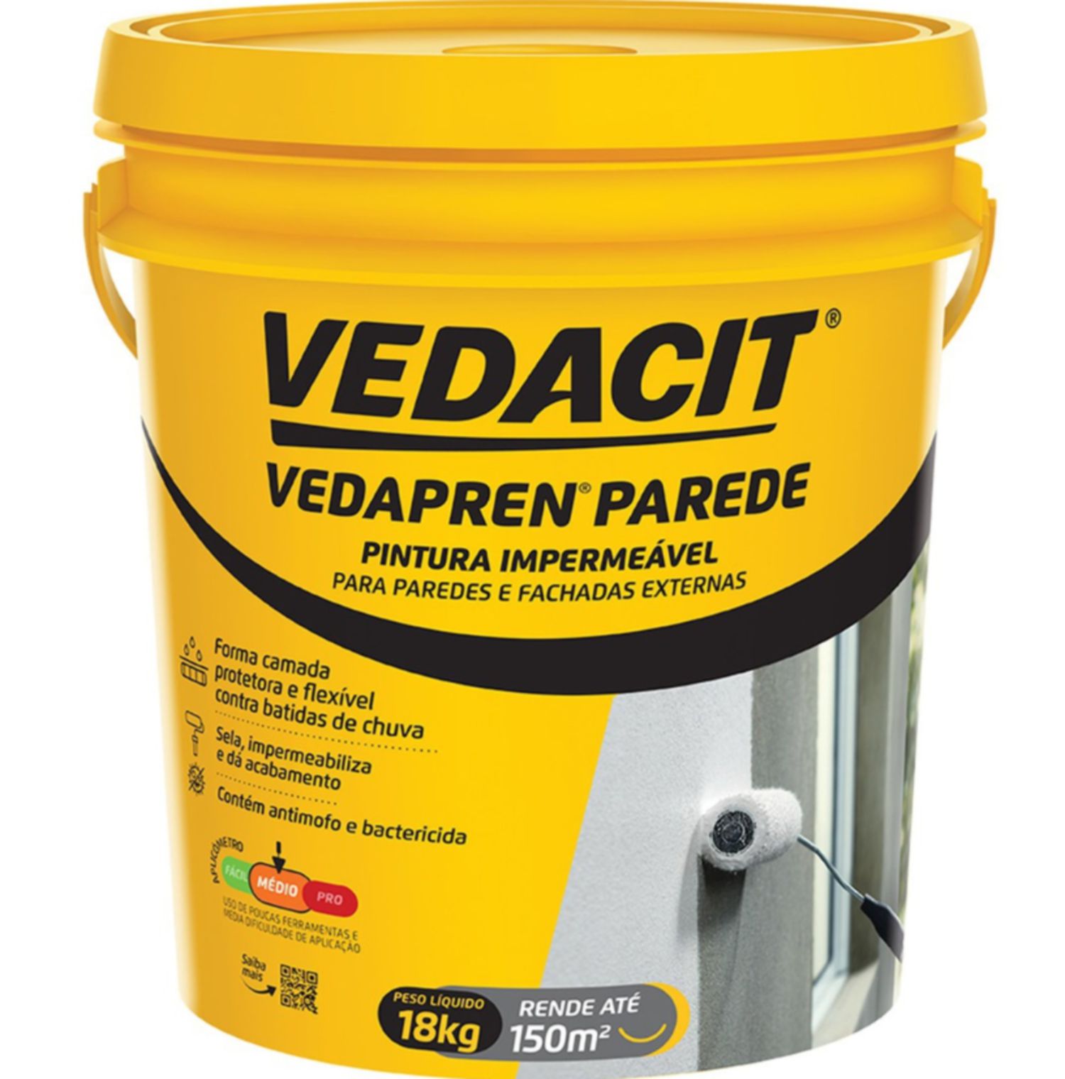 VEDACIT VEDAPREN PAREDE é uma pintura impermeável e elástica, à base de copolimeros acrílicos, que protege as paredes externas e fachadas contra batida de chuva.Tem a característica de selar, impermeabilizar, dá acabamento com maior cobertura e conforto térmico. Aplicado sobre concreto, fibrocimento e reboco, pode receber pintura de base acrílica premium, standard ou textura acrílica e pode ser pigmentado em tons claros.